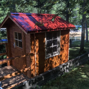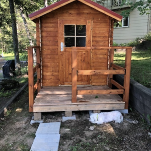 Installation: Most clients (80%) enjoy building their bunkies themselves – we provide easy to follow installation manuals and video aid. See stories of happy clients building their bunkies. If you would prefer to have your bunkie installed, we recommend a local contractor, landscape or decking company or contact us for a list of contractors who have installed bunkies for other clients. You will need to add a foundation, metal or shingle roofing, and stain.