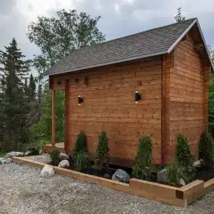 Installation: Most clients (80%) enjoy building their bunkies themselves – we provide easy to follow installation manuals and video aid. See stories of happy clients building their bunkies. If you would prefer to have your bunkie installed, we recommend a local contractor, landscape or decking company or contact us for a list of contractors who have installed bunkies for other clients. You will need to add a foundation, metal or shingle roofing, and stain.